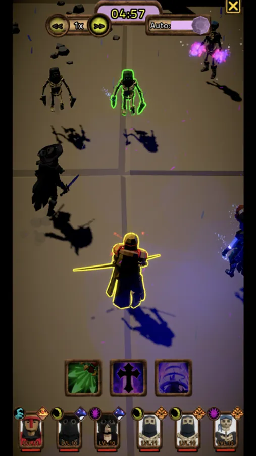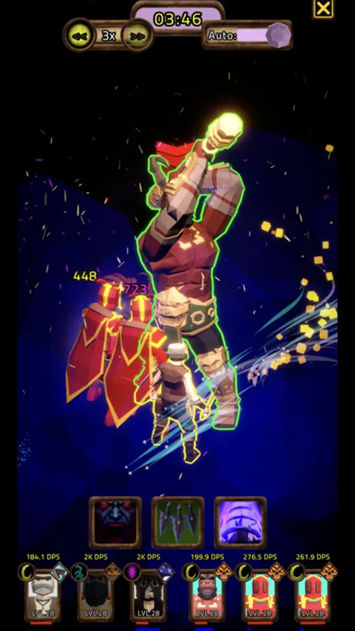 Take charge with abilities, by switching between heroes, targeting enemies, or use auto-play for idle gameplay!
