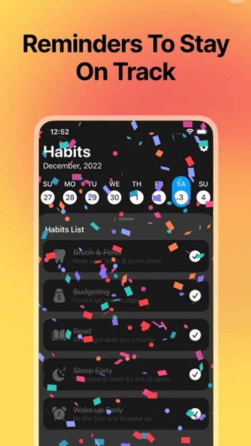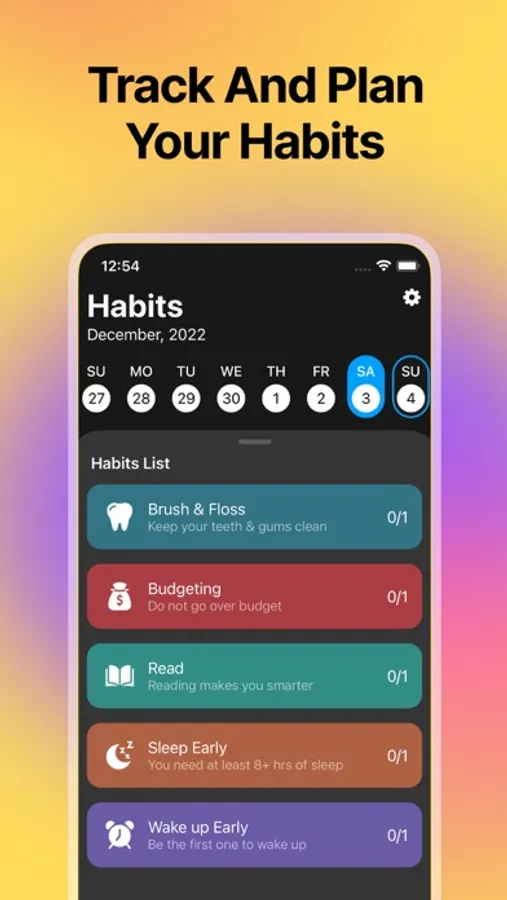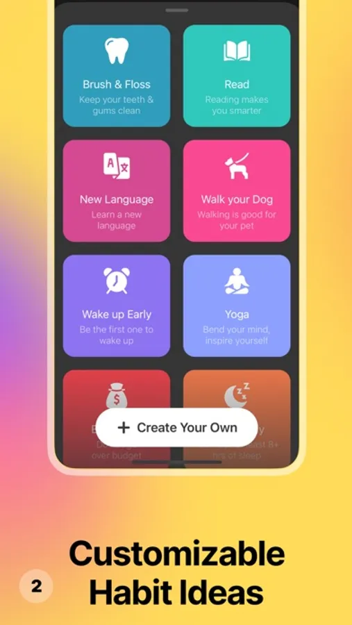 Habit Tracker is your go-to app for creating and sticking to healthy habits. With our intuitive interface and customizable habit ideas, you'll be able to easily set up reminders and track your progress. Plus, our app provides inspiration for new habits to help you reach your goals and make lasting change.