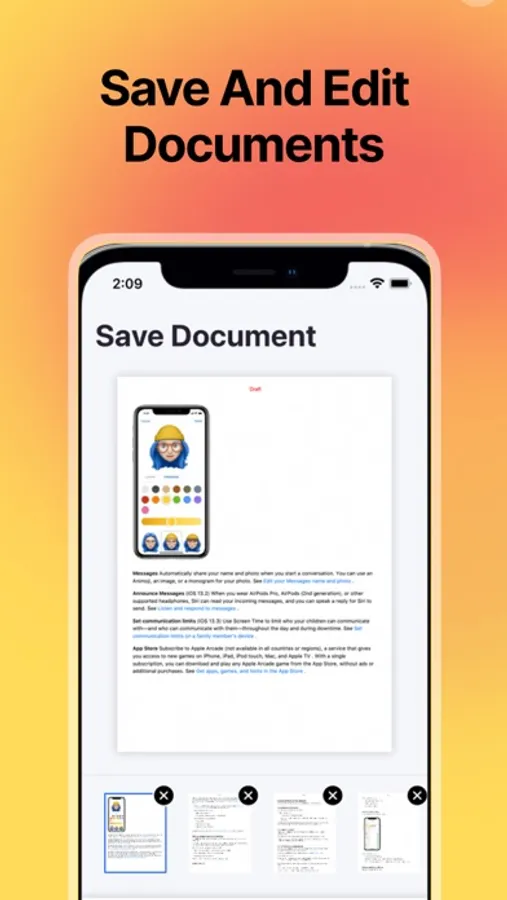 * In-app purchases for unlimited document scanning, ad removal, and text recognition unlocking