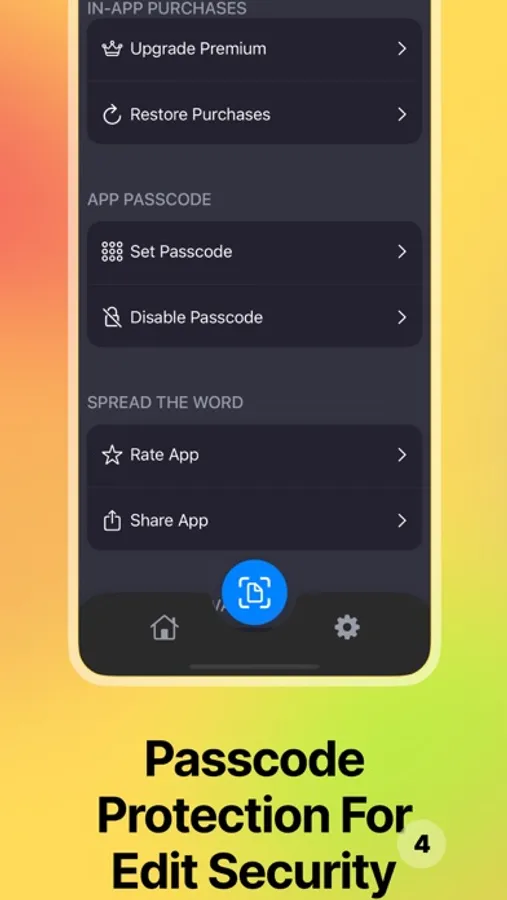 Our app also includes a range of convenient and secure features, such as in-app purchases, dark mode, AdMob ads, folders for organizing your documents, and passcode protection for added security. Whether you're a student, a professional, or simply someone who wants to stay organized, PDF Scanner has you covered.