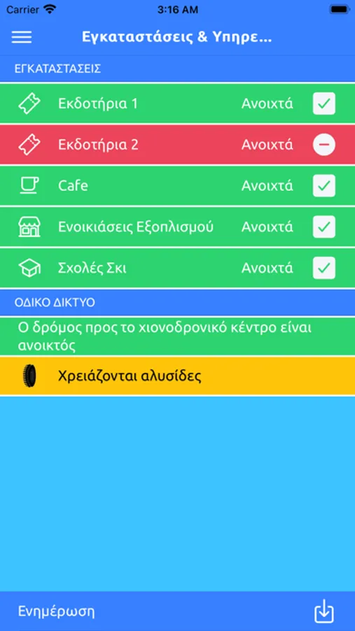 Με την εφαρμογή του Εθνικού Χιονοδρομικού Κέντρου Βασιλίτσας μπορείτε να ενημερωθείτε σε πραγματικό χρόνο για τις τρέχουσες καιρικές συνθήκες και την κατάσταση λειτουργίας των υποδομών του κέντρου, αλλά και του οδικού δικτύου της περιοχής.