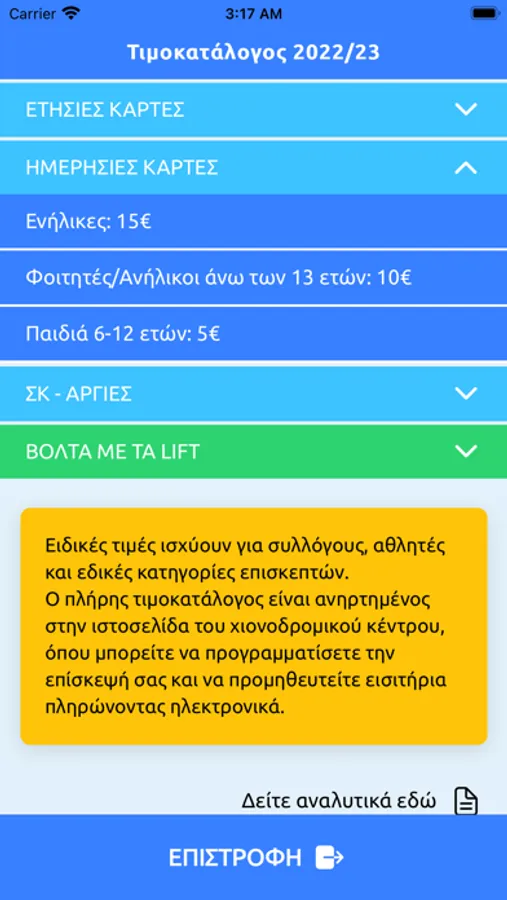 Επιπρόσθετα μπορείτε να παρακολουθείτε το λογαριασμό σας, έχοντας άμεση πρόσβαση στις κάρτες χιονοδρομίας που έχετε προμηθευτεί και τους πόντους επιβράβευσης που κερδίζετε και μπορείτε να εξαργυρώσετε σε δώρα.