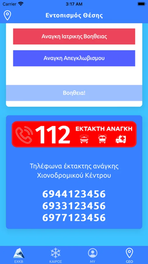 Σε περίπτωση ανάγκης παρέχεται η δυνατότητα ειδοποίησης του προσωπικού ασφαλείας, με εντοπισμό του γεωγραφικού στίγματος και αυτόματη αποστολή των συντεταγμένων της θέσης σας, αν ζητήσετε βοήθεια.