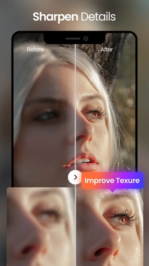 - Improve photo quality and make your portrait, selfie, or group picture clearer.