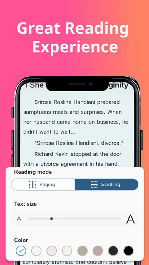 When you are reading, you can select the most comfortable background color and text size. And when you are reading in the dark, just swift to the dark mode.
