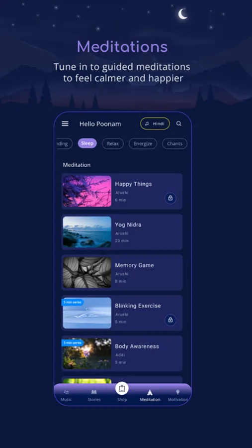 - Inspired by yog-nidra with calming meditations