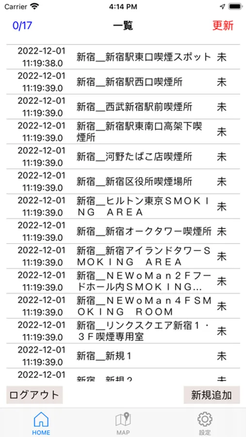 駐車場や公共の喫煙所などの位置情報や外観などを調査するためのアプリです。