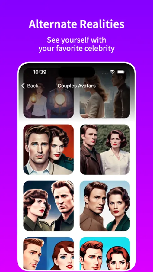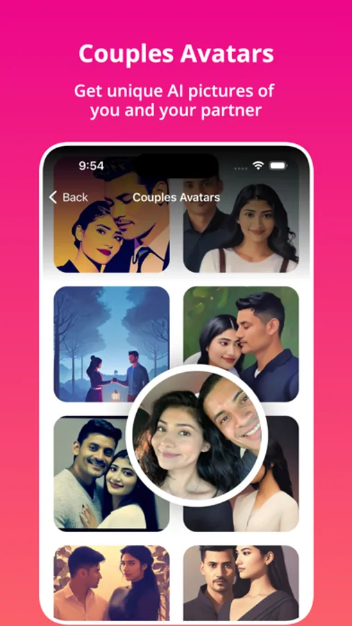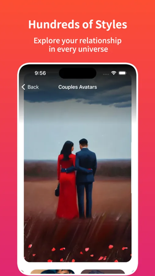 Glimpse will generate unique avatars of you and your partner together in a variety of styles and locations!
