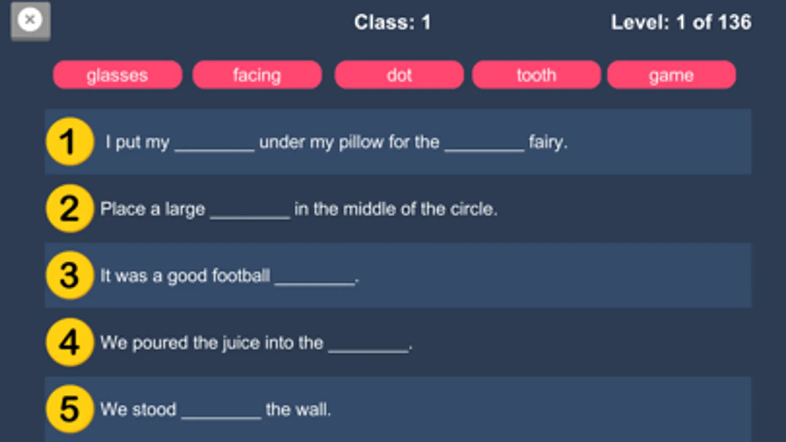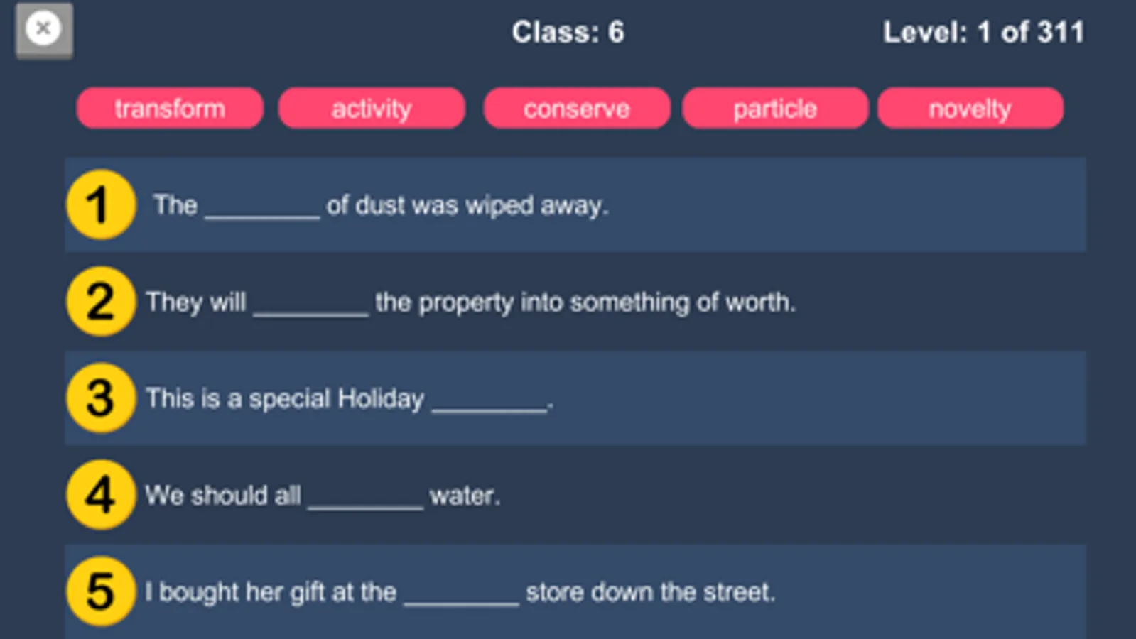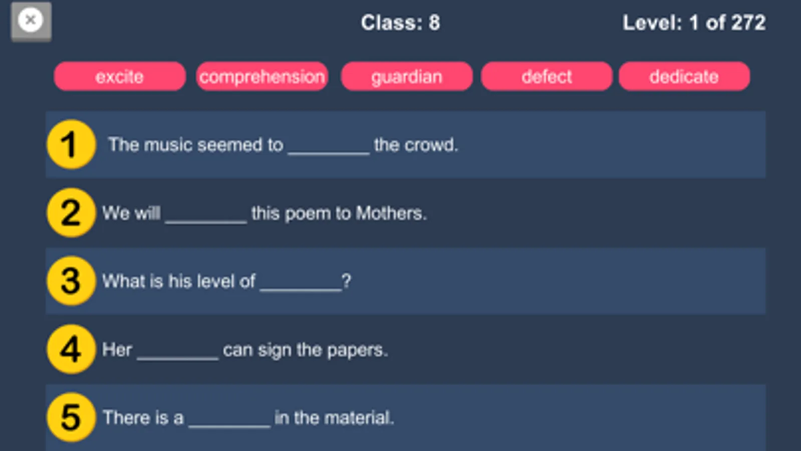We've carefully curated eight distinct categories, ranging from easy to hard levels, to cater to your individual learning needs. With a whopping 10,000 sentences at your disposal, you'll explore various contexts and complexities in English language usage. This application is your comprehensive guide to mastering the art of filling in the blanks in sentences while learning how to use words grammatically.