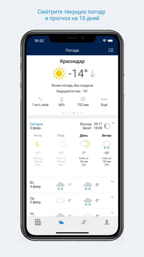 - узнавать прогноз погоды на ближайшие 10 дней;