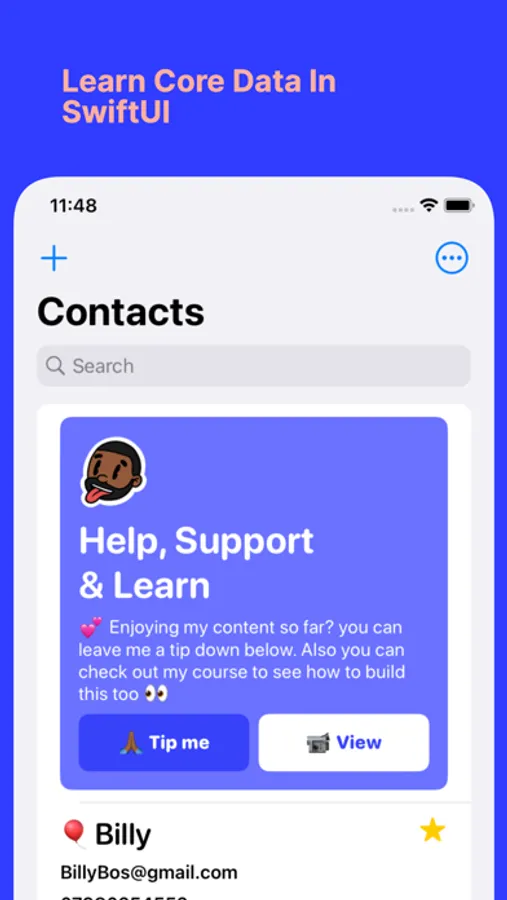 My Best Friends is an app built by me (tundsdev) iOS Content Creator. It is featured on my website, which has a free course where you can learn how to make this app using Core Data and SwiftUI. You can also use the app to help you manage the people you care about and their contact information.