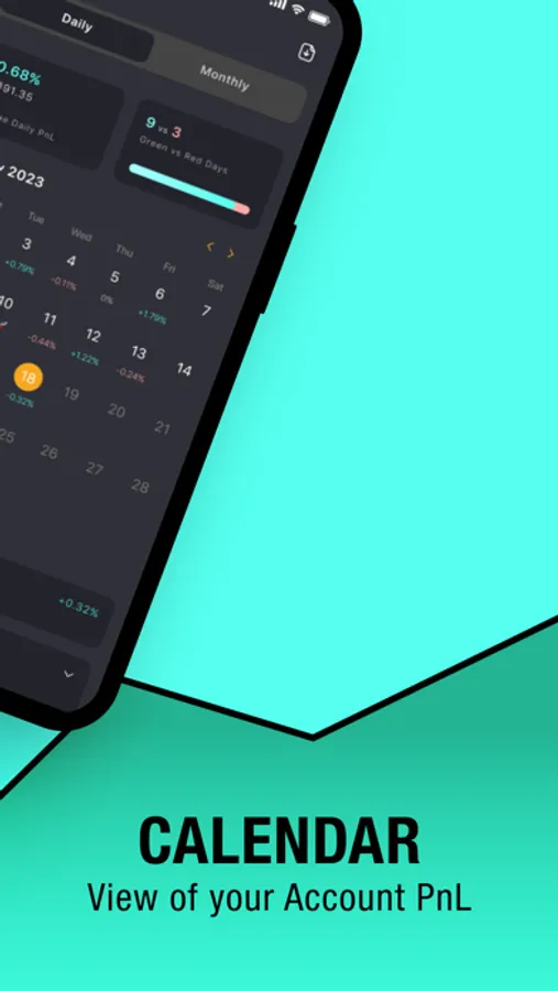 Refer to your PnL calendar for a quick view of your daily and monthly performance including your green vs red days and daily average PnL.