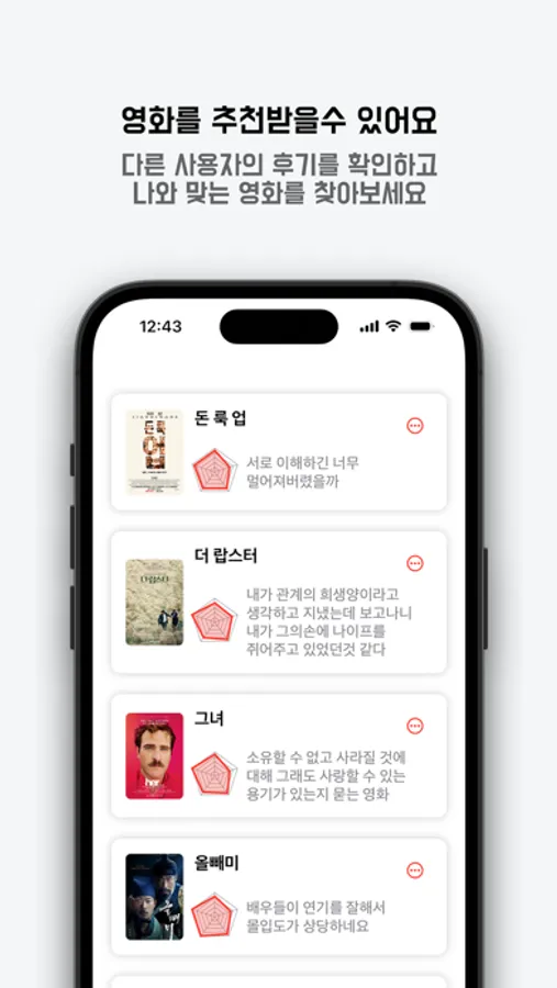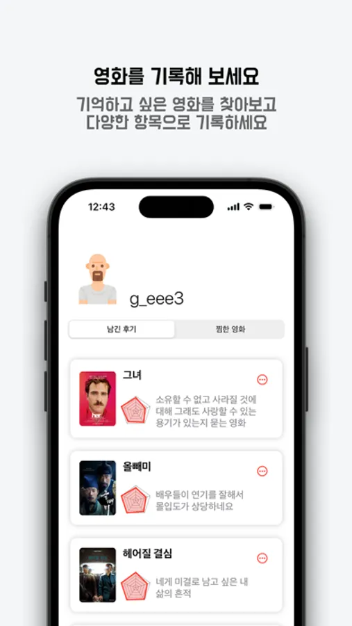 - 감상한 영화에 대한 리뷰를 자세한 평점 항목과 함께 등록할 수 있습니다.