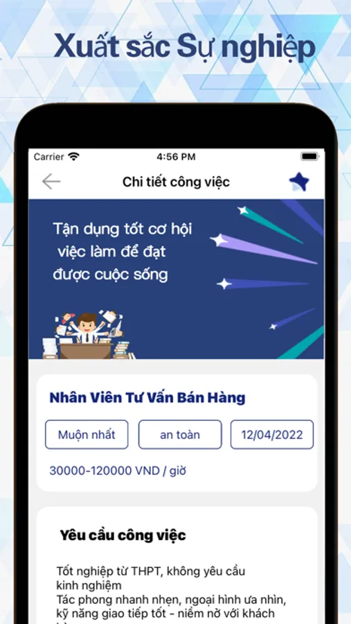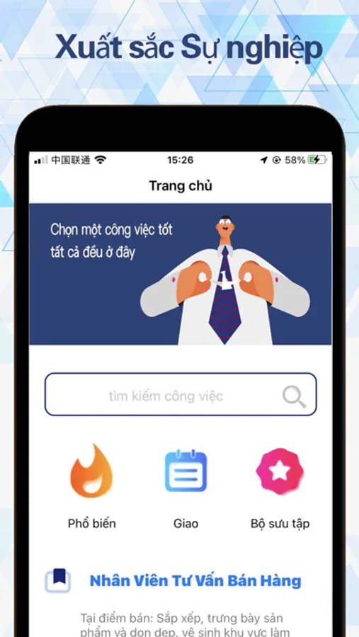 Ứng dụng có thể giúp bạn nhanh chóng tìm được việc làm. Nhà tuyển dụng được ưa thích bởi nền tảng. Nó an toàn và đáng tin cậy. Bạn chỉ cần đăng ký làm thành viên để nhanh chóng liên lạc với nhà tuyển dụng. Tìm một công việc đáng tin cậy là điểm khởi đầu của sự nghiệp của bạn. Hãy đến và thử nó.