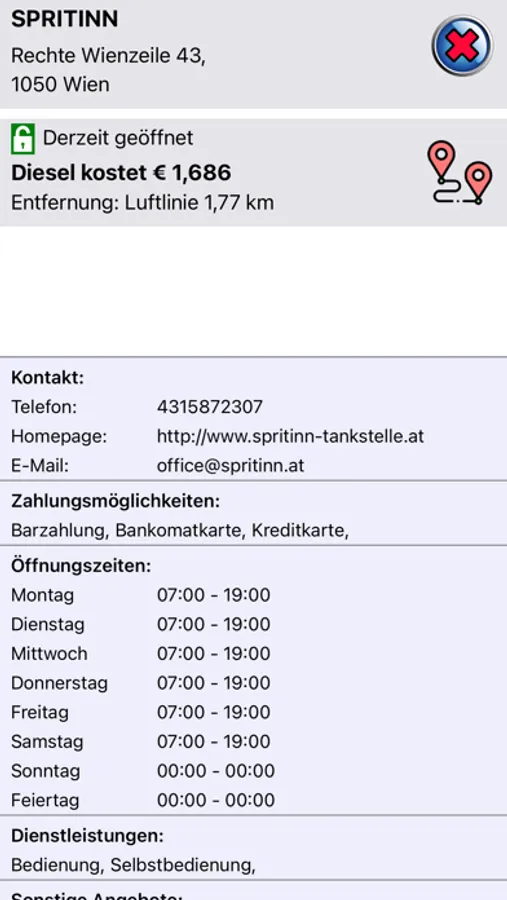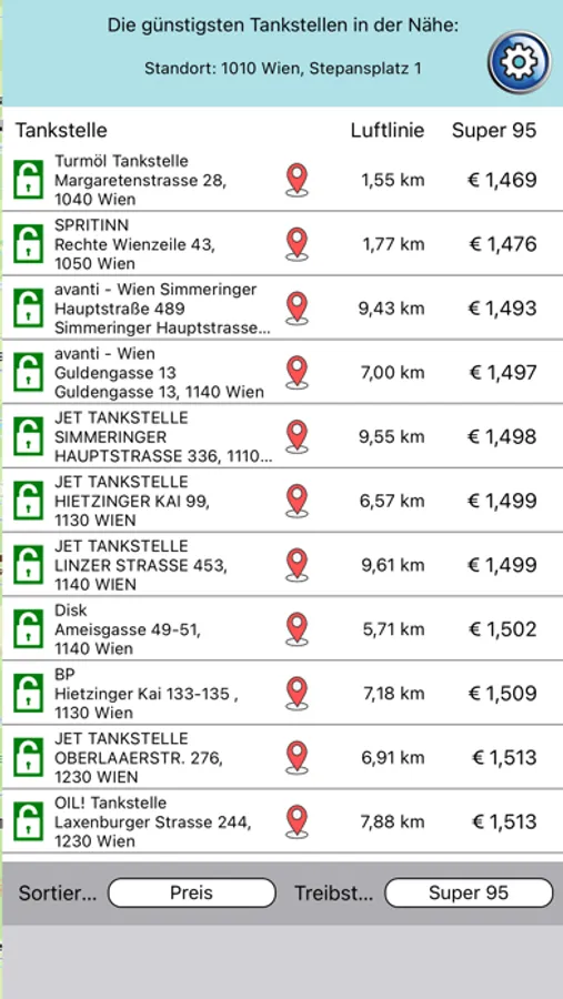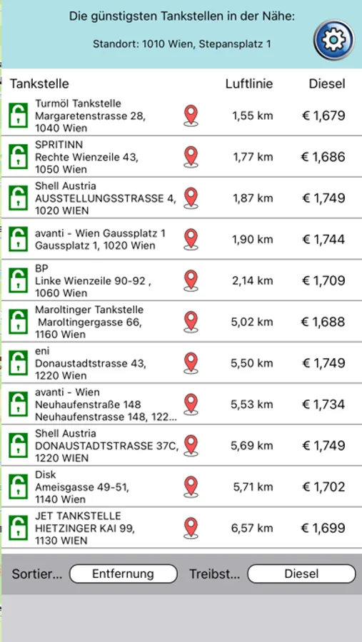 Günstig tanken ist nun ganz einfach. Finde die günstigste Tankstelle im Umkreis von 10km mit allen Detailinformationen, wie Preis, Öffnungszeiten, Shopangebot und Zahlungsmöglichkeiten. Auch die schnellste Route zur Tankstelle kann angezeigt werden.