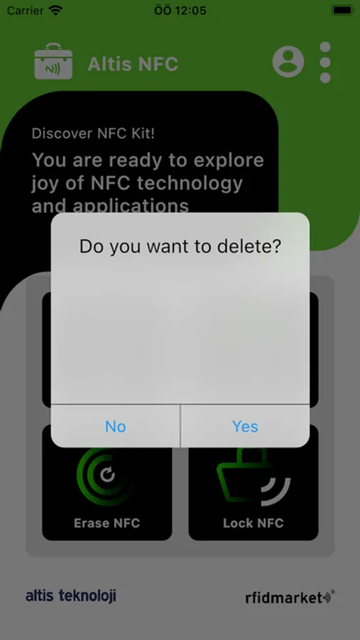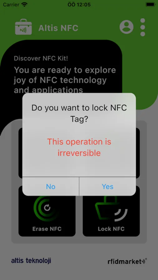 Application is optimized for NTag 213 chips. You can easily delete or lock the NFC tag or card as you wish with Altis NFC Kit!
