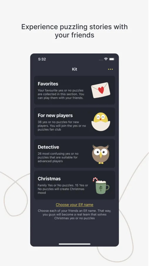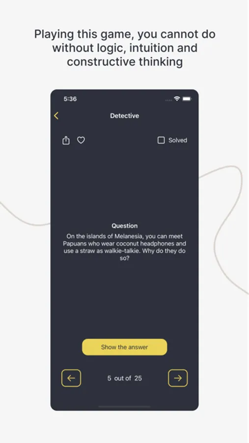 This game is for two and more people. The host of the game reads a situation (a question) that described in the app. Participants should find the answer asking questions to the host.