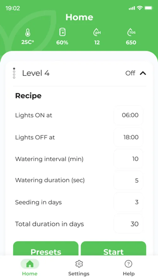 * Using the application, functions such as lighting, ventilation, solution preparation and watering are controlled.