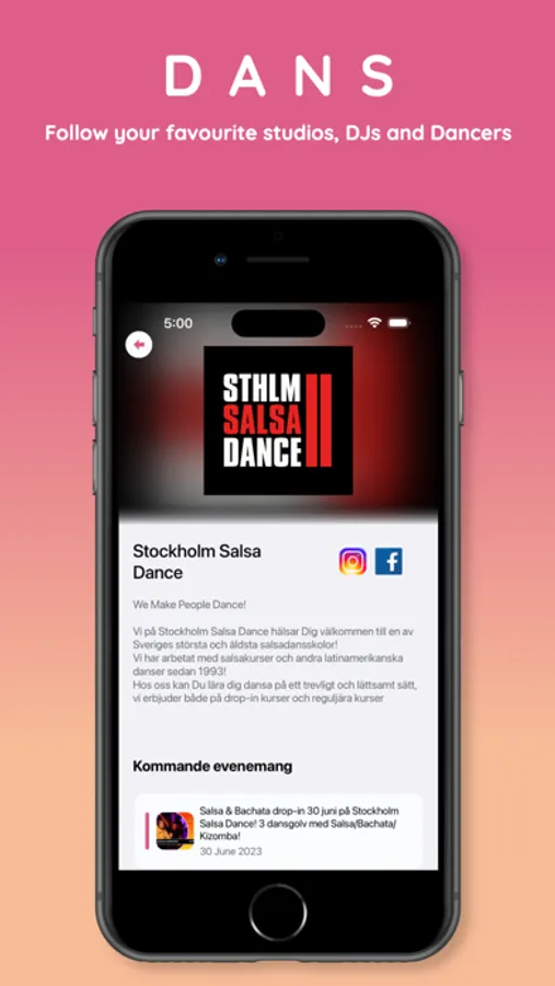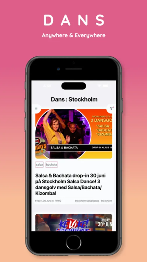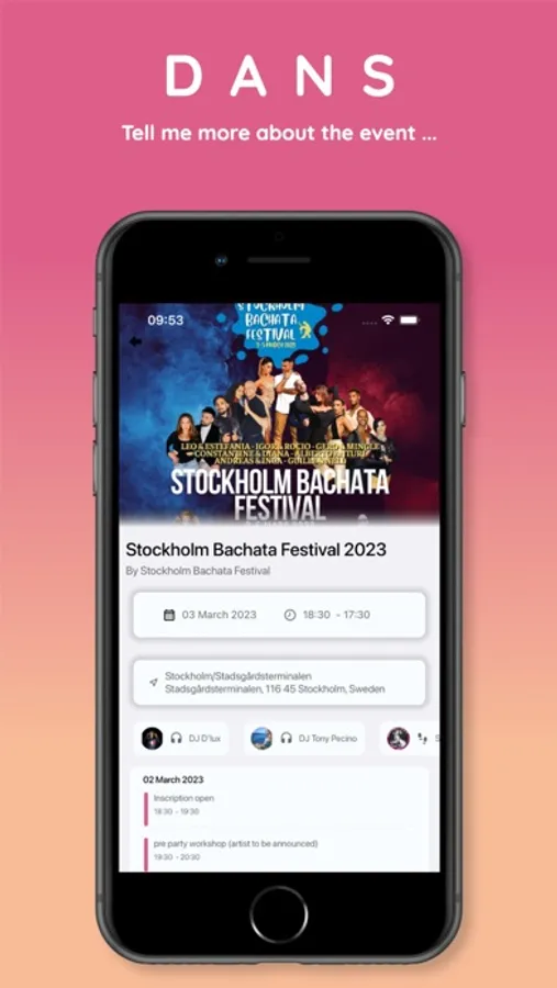 With our app, you can easily browse and discover all types of dance events, from salsa nights to hip-hop battles. Get more information about each event, including the location, time, and type of dance.