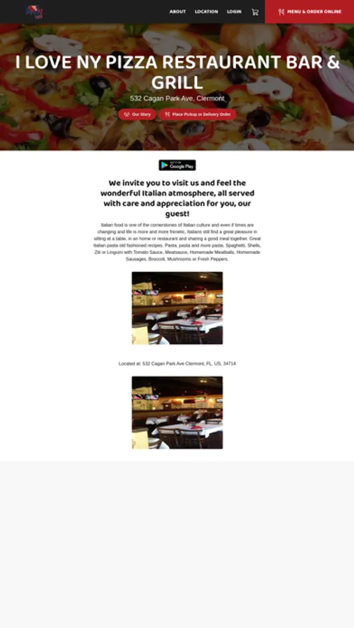 The official mobile app for I Love NY Pizza Restaurant Bar & Grill in 532 Cagan Park Ave, Clermont, FL 34714!