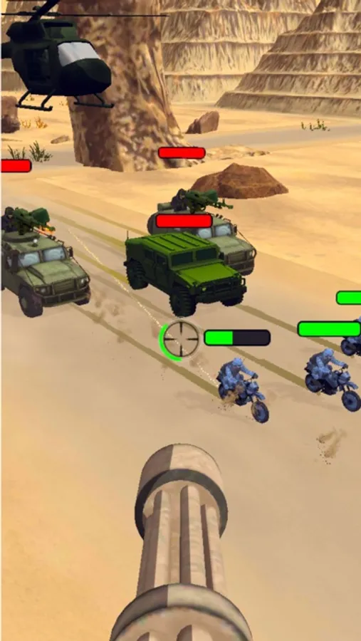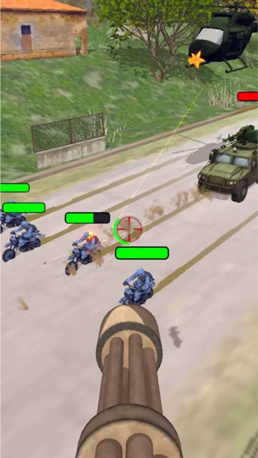 Cover your allies from your helicopter while they're fleeing their attackers on the ground. Can you keep your friends alive and take out their chasers before it's too late?