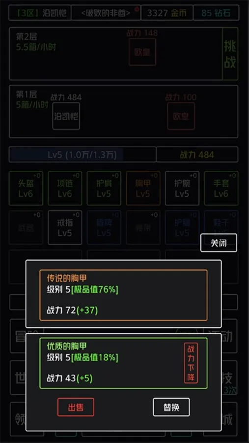=开启宝箱=,开启并更换战力更高的装备,宝箱装备等级随角色等级提升