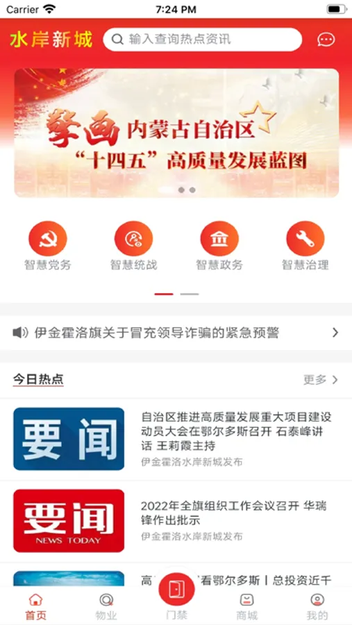 “智慧水岸新城”是鄂尔多斯市伊金霍洛旗水岸新城社区政务服务移动端统一服务平台,应用秉承“以市民为中心”的理念,汇聚全旗政务服务、公共服务和便民服务资源,提供政务办理、信息发布和咨询互动等功能,让市民足不出户就可以享受到方便快捷、统一规范、优质高效的政务服务,实现服务便民利民、办事依法依规、信息公开透明。
