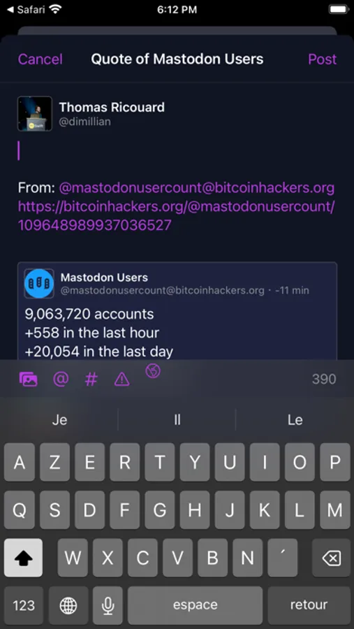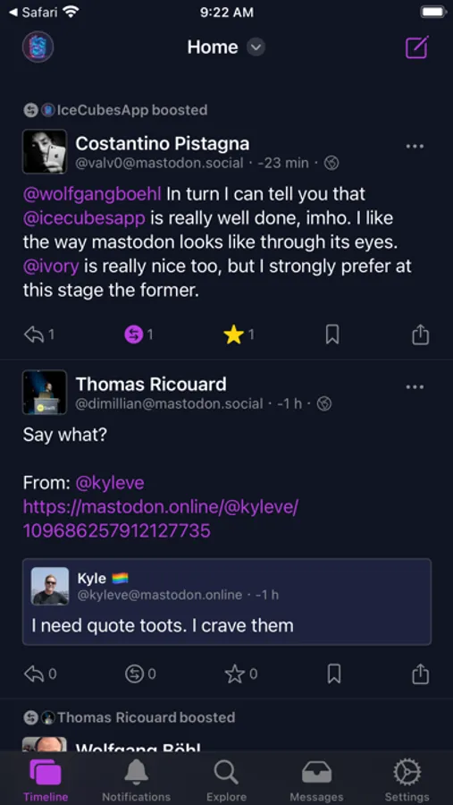 - You've read it right, this app offer a quote toot feature, Ice Cubes will also embed any other toot link so the content is easily readable.