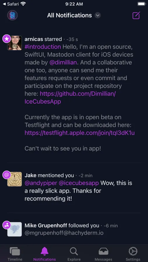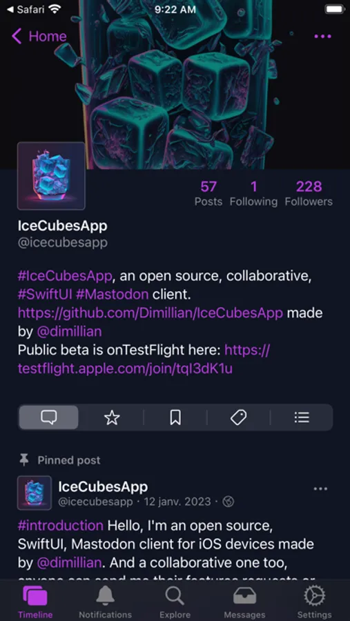 Bonus: It's completely open source, you can have a look at the code here: https://github.com/Dimillian/IceCubesApp to learn more, and maybe even follow along!