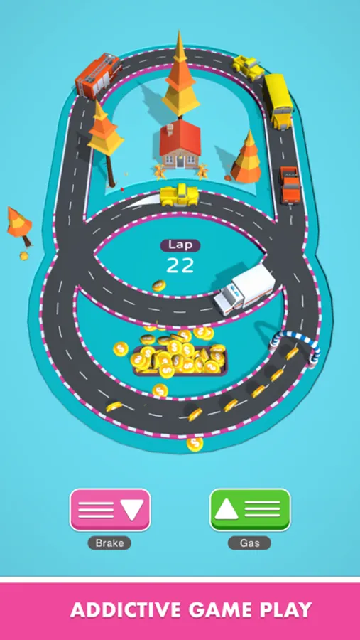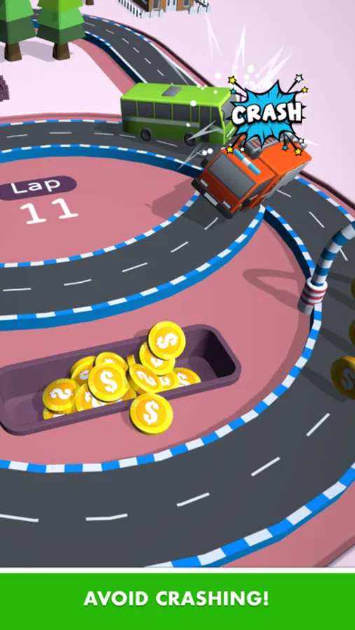 Watch out for other cars, control your speed, avoid crash earn points and collect bundle of coins for every circle your car does.