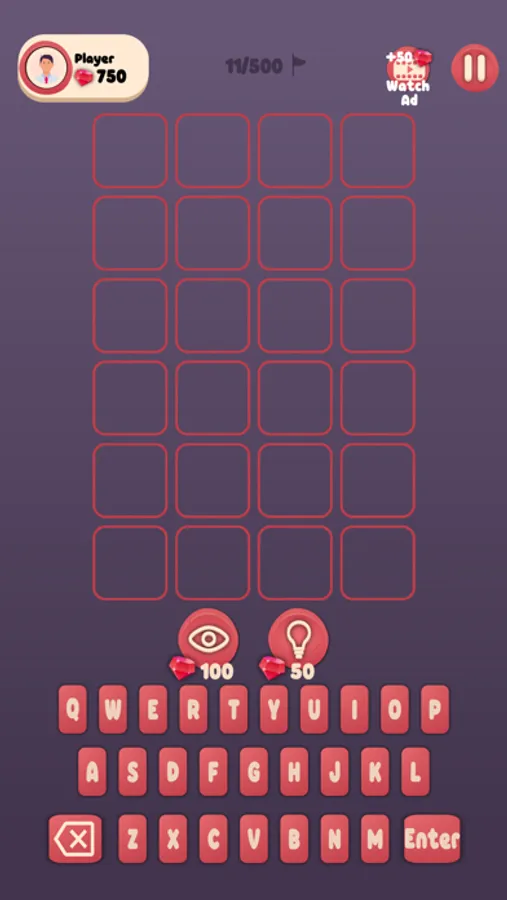 500 levels without repeat in every letter category and language, be a word master by completing all levels!