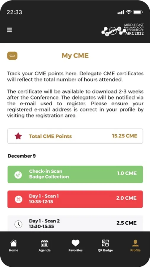 • Accessing your e-badge and easily using it to check in during scanning timings