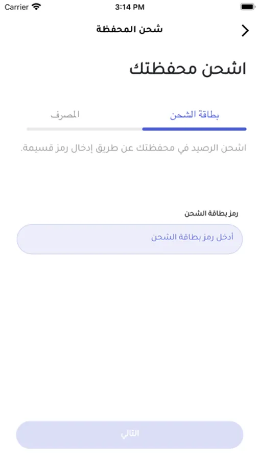 تتوفر خاصية الشحن للمحفظة اما عن طريق الإيداعات المصرفية أو بطاقات الدفع المسبق .