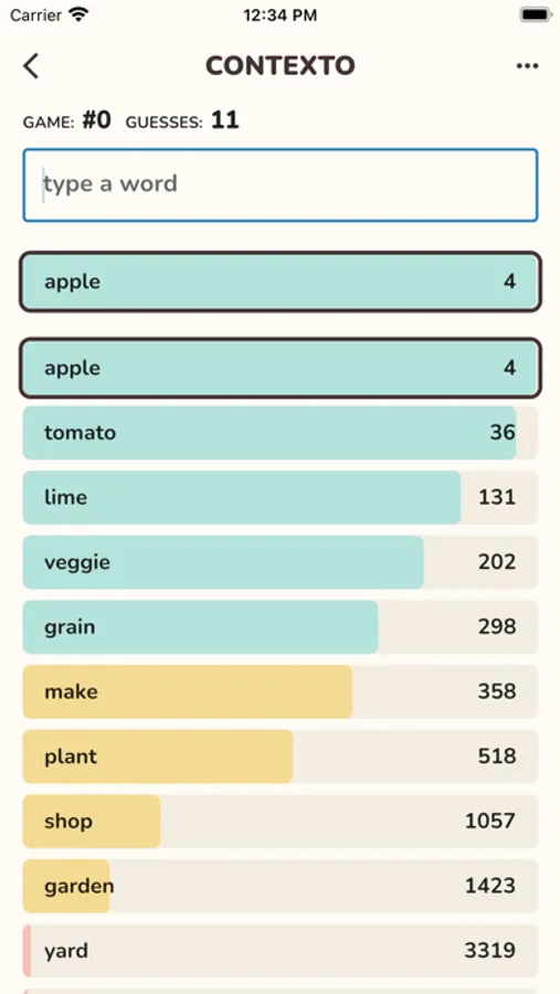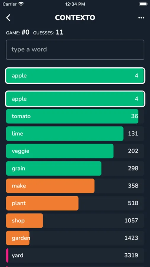 The words were sorted by an artificial intelligence algorithm according to how similar they were to the secret word.