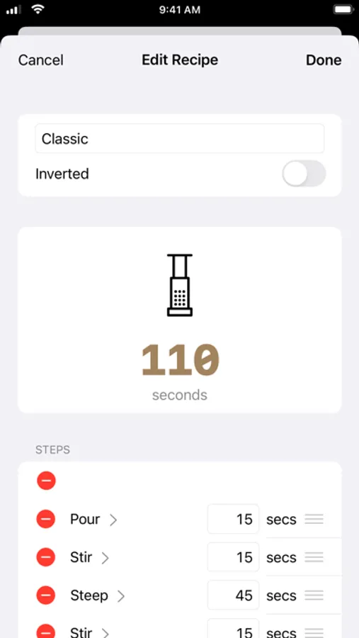 Use gjAero to create and manage your recipes for creating the perfect AeroPress brew every time.