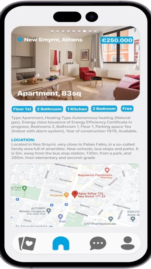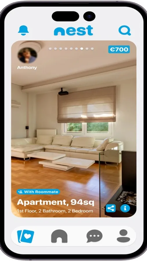 Mobile real estate app that connects real estate owners or brokers with potential buyers or tenants, searching for apartments to live alone or with a roommate.