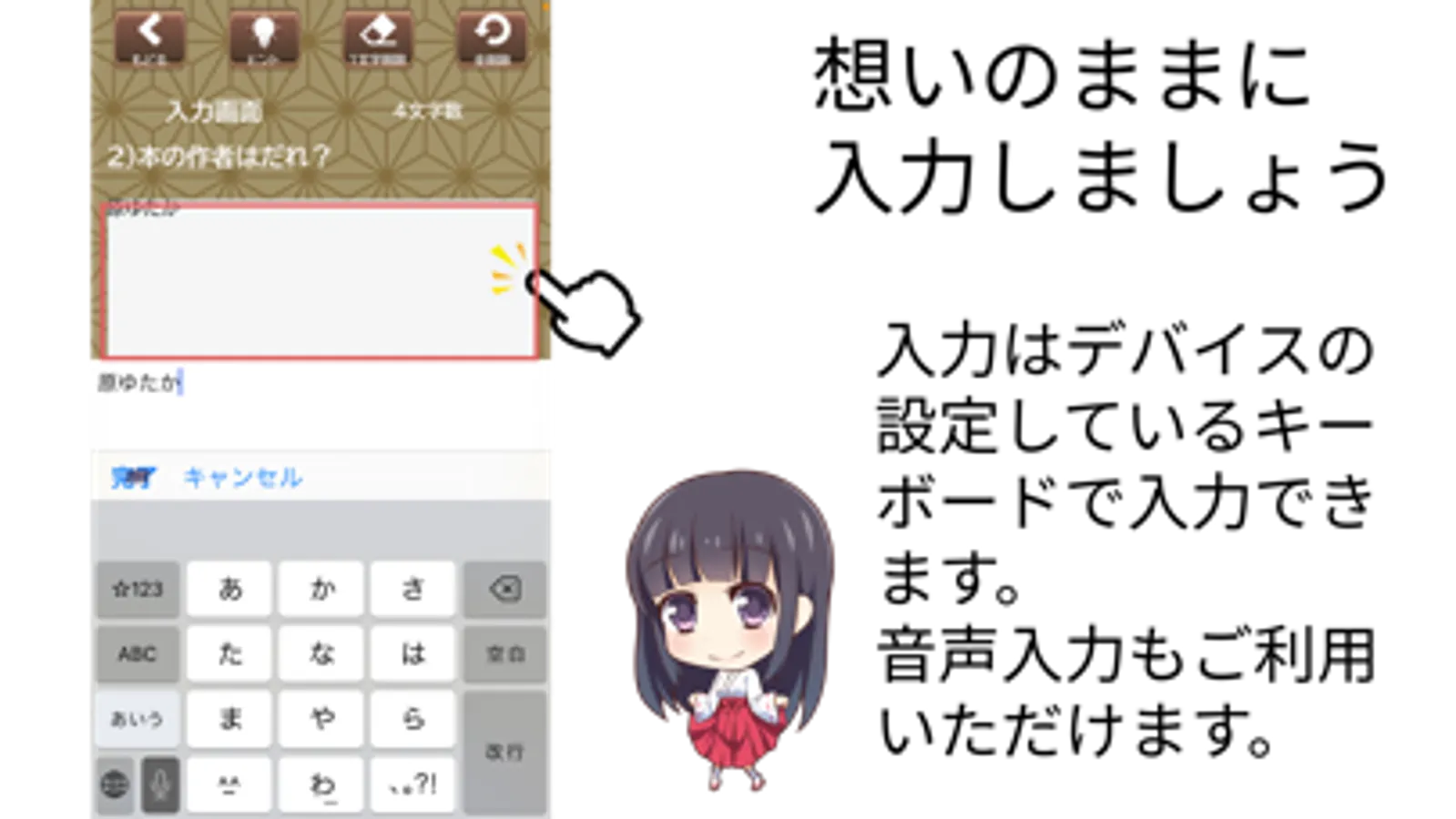 ご利用のスマートフォンの入力システムでご利用いただけます。