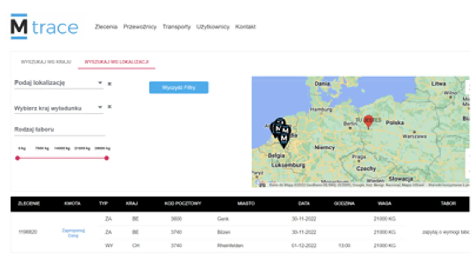 - Łatwe wyszukiwanie ładunków m.in. po geolokalizacji