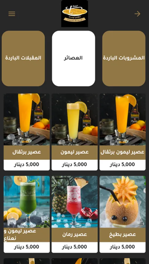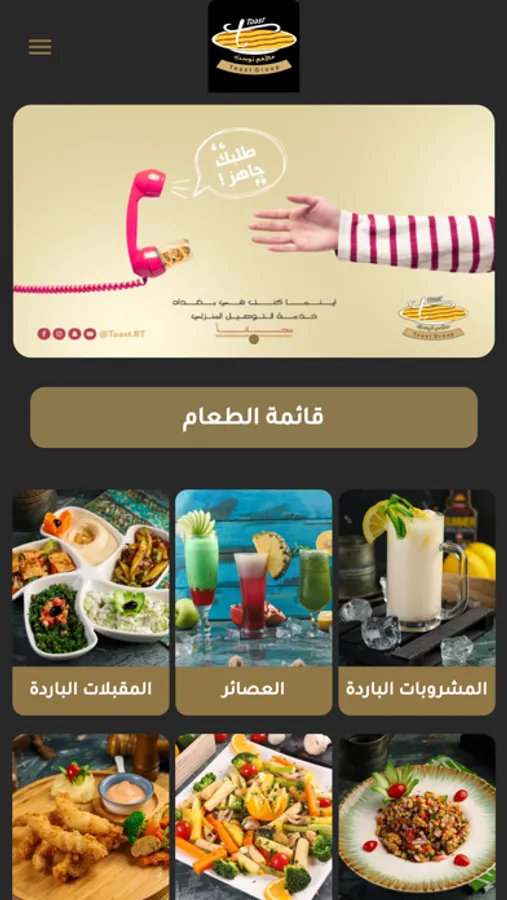 كل تصنيف يعرض فيها تفاصيل الاكلات والمشروبات المتوفرة في المطعم