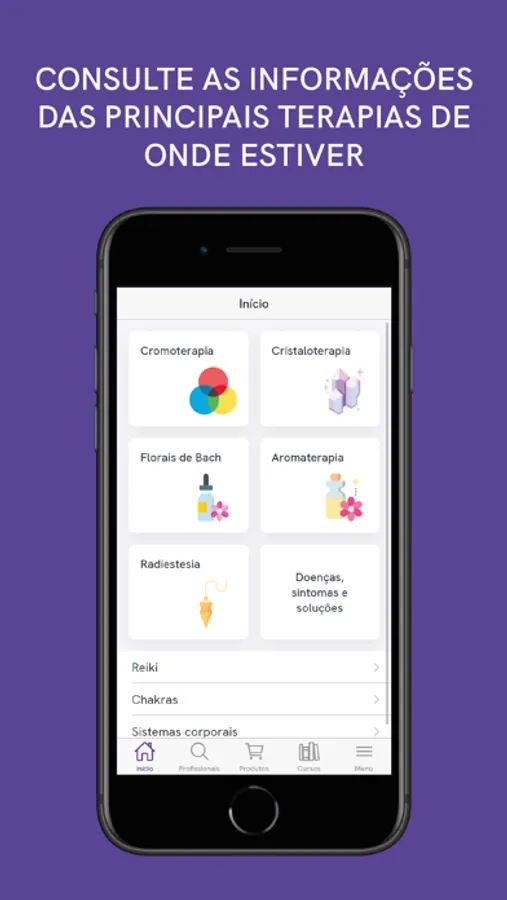 • Soluções para doenças e sintomas de forma prática e abrangendo diversas terapias, como Cromoterapia, Cristaloterapia, Florais de Bach, Aromaterapia e Radiestesia;