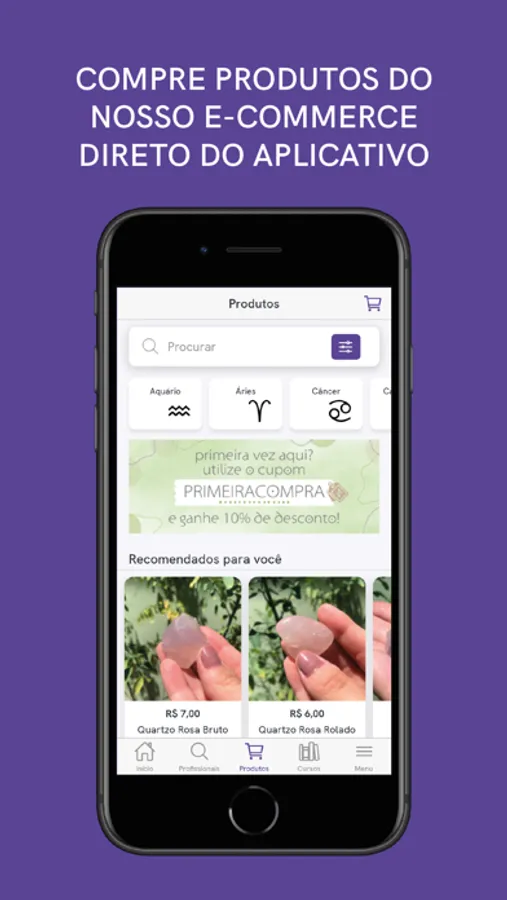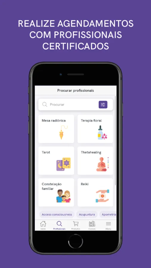 Através do aplicativo, é possível acessar o e-commerce e adquirir produtos holísticos, como cristais, pêndulos e outros, além de realizar cursos para o aprimoramento profissional. Nele, o seu interagente também consegue realizar agendamentos online, aumentando a praticidade e facilidade de comunicação.