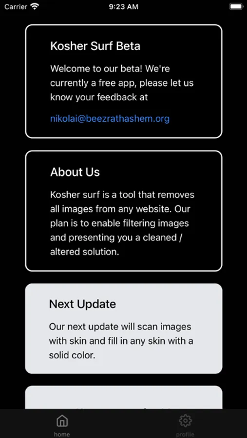 Are you tired of stumbling across inappropriate or immodest pictures on the internet? Introducing Kosher Surf, the app that makes browsing the web a more wholesome experience. With its advanced filtering technology, Kosher Surf ensures that you only see the content that you want to see. Whether you're browsing for work, school, or leisure, you can trust Kosher Surf to keep things clean. So why settle for a regular old browser when you can surf the web with confidence using Kosher Surf? Download it today and start enjoying a cleaner, more wholesome internet experience.