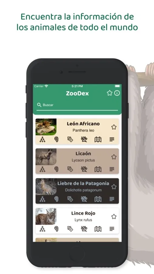 Además de poder agregar los animales que mas te gusten o consultes a tu lista de favoritos.