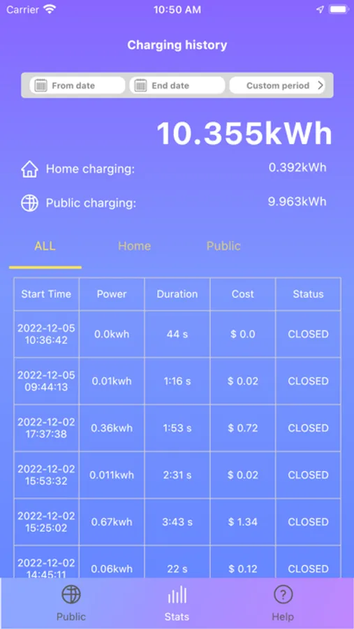 Real-time charging status monitoring, check the charging histories, overview the charging electricity of each day, each month and each year.