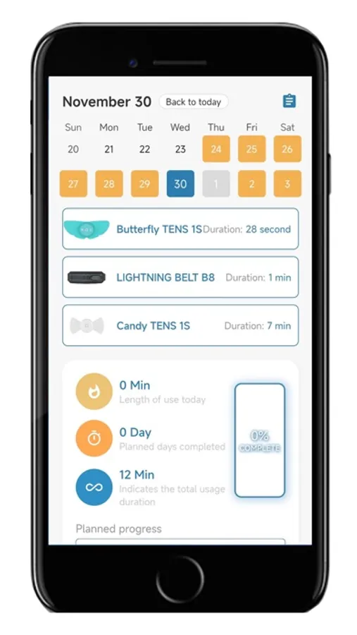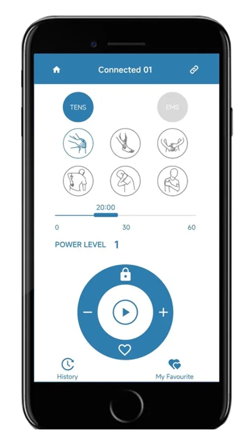 APP with massage products to use ,set the massage parts. treatment way、pain level、massage intensity. massage time and mode. Bluetooth connection to do effective massage and treatment.