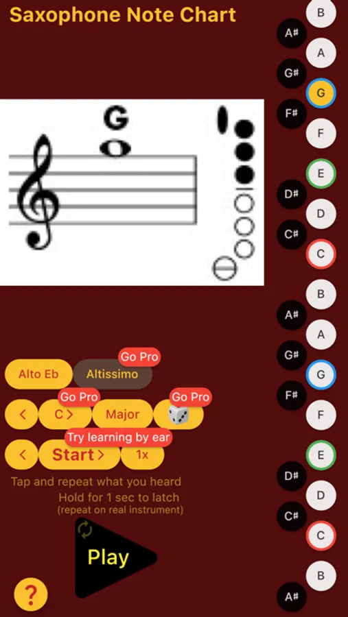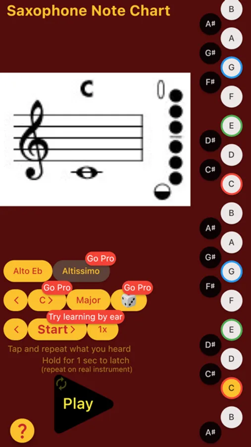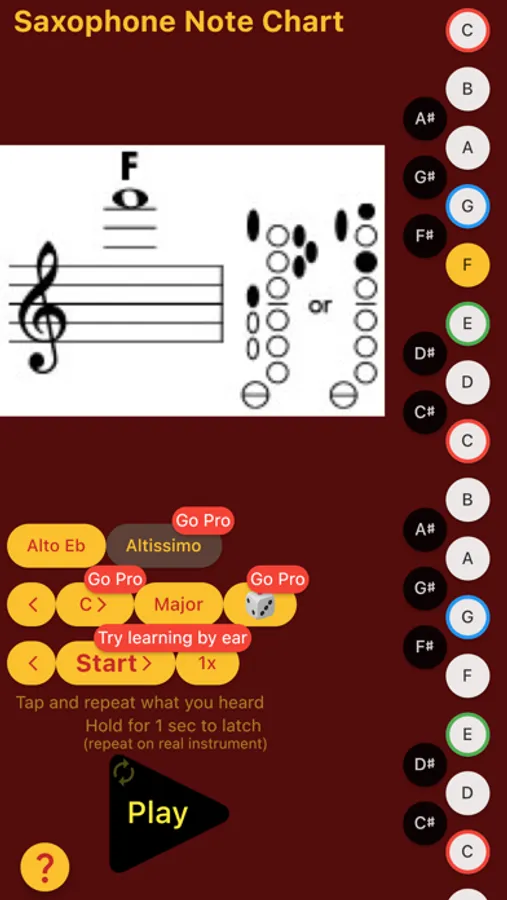 Handy note chart that lets you learn all the notes very easily, including the altissimo range. You can choose the type of saxophone for the better reference. From the creators the revolutionary ear training platform, the "... by Ear" series. Multiple instruments available, check out developer's profile for more.