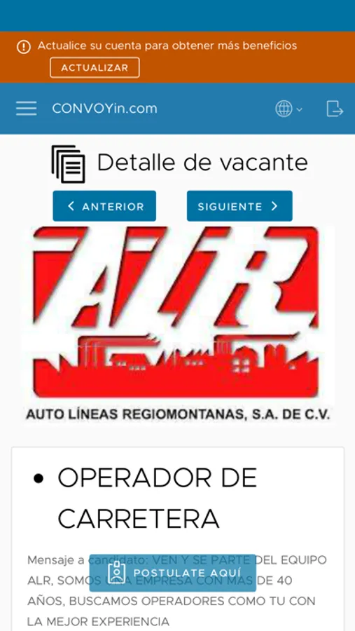 - Busca vacantes de empresas de acuerdo a tu perfil de operador.