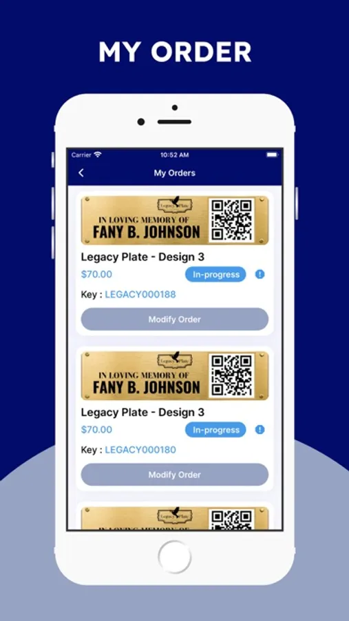deceased loved ones like Facebook. In-App purchases of Legacy Plates™ (Standard Site Marker,