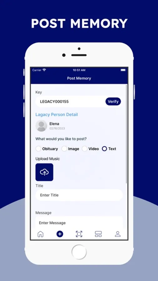 application for pictures, videos, journal reels, and pdf versions of obituaries to profiles for