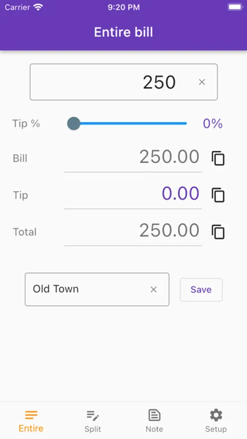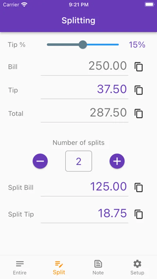 The app calculates and displays tips on the bill as a percentage set by the user. It can also be calculated when multiple people split the payment.